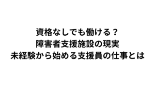 支援員 資格なしでも働ける?障害者支援施設の現実|未経験から始める支援員の仕事とは はじめに 「資格がなくても、障害者支援施設で働けるのかな?」そう思ったことはありませんか? 支援員の仕事というと、専門資格が必要だと思われがちですが、実際には無資格・未経験から始めている人も多いのが現実です。人の生活を支えるこ... 2025.11.05 支援員無資格福祉・介護